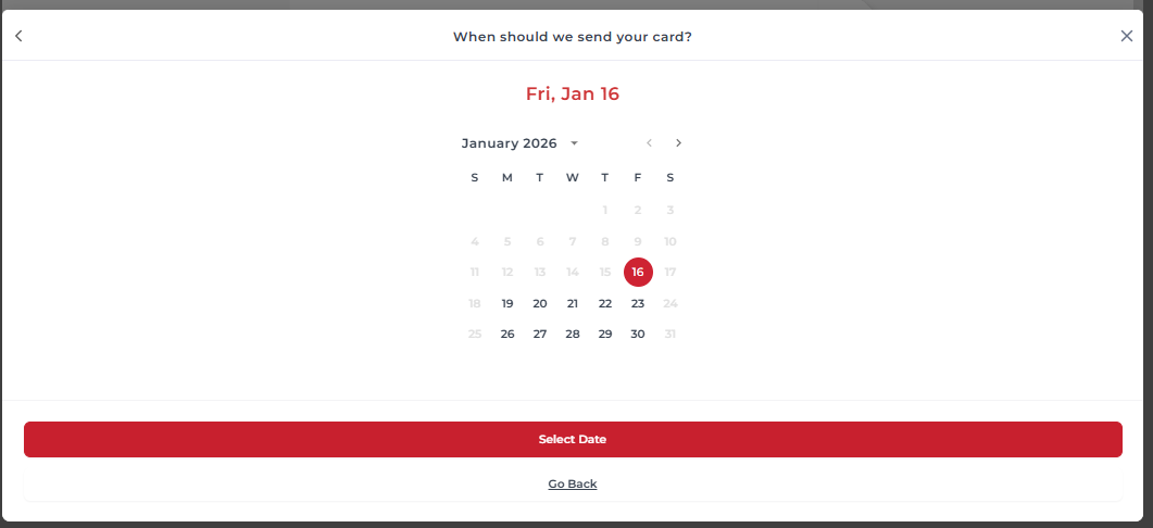 - Select delivery timing - choose whether you’d like to schedule delivery for a later date (shipped via standard shipping), or send it right away