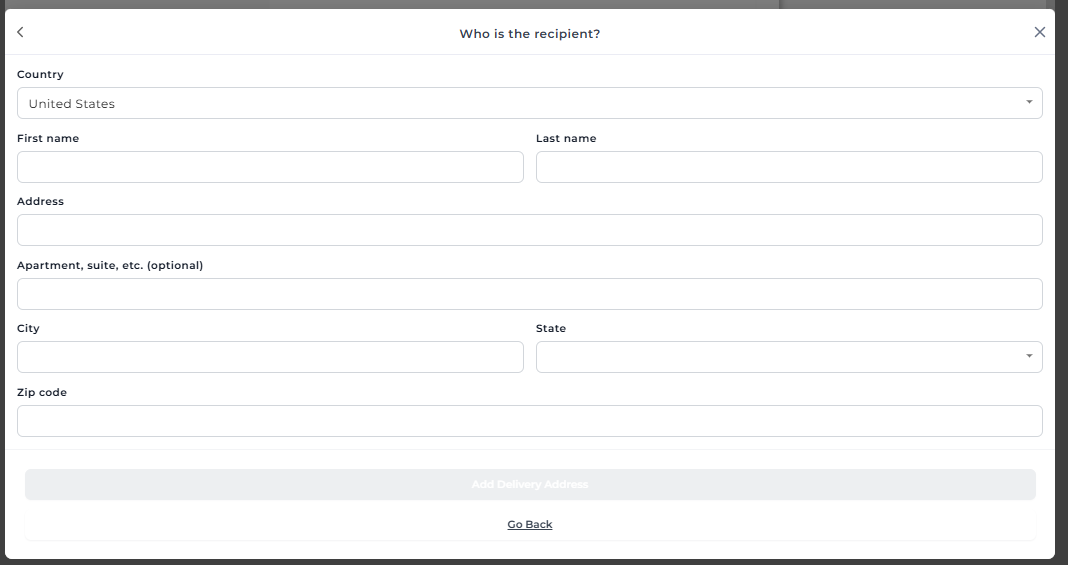 - Enter the delivery address