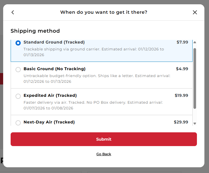 - Choose a shipping option - select your preferred shipping method at checkout.