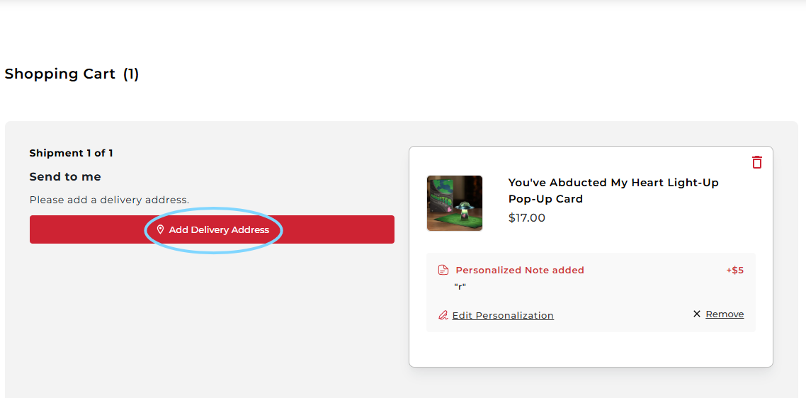 - Add the card to your cart by clicking confirm
