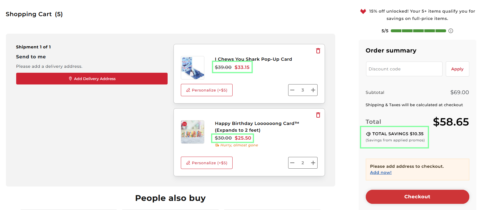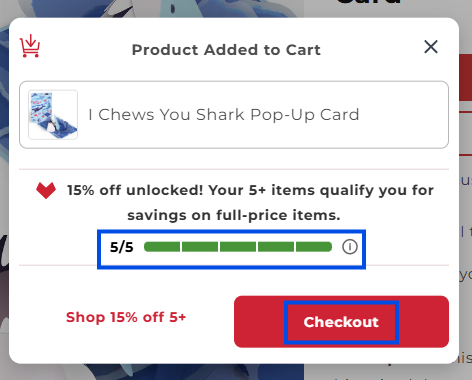 Our 15% Off 5+ Deal is automatically applied when you add five or more Lovepop products to your order.